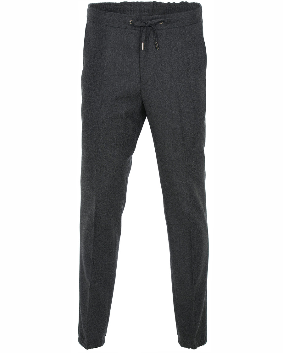 Slim Fit Drawstring Flannel Trousers Charcoal
