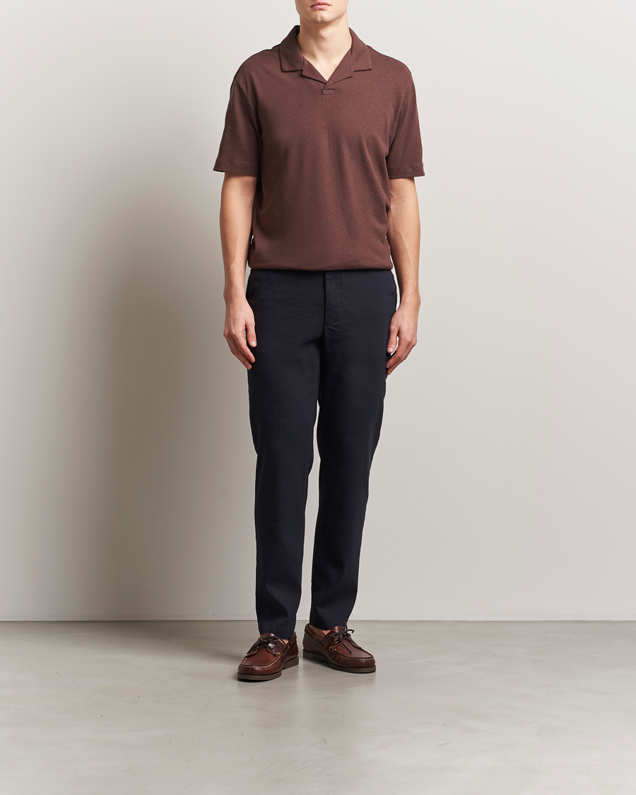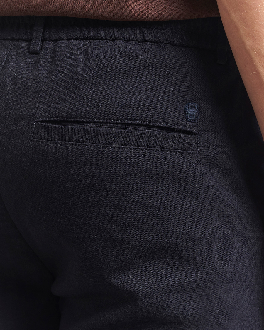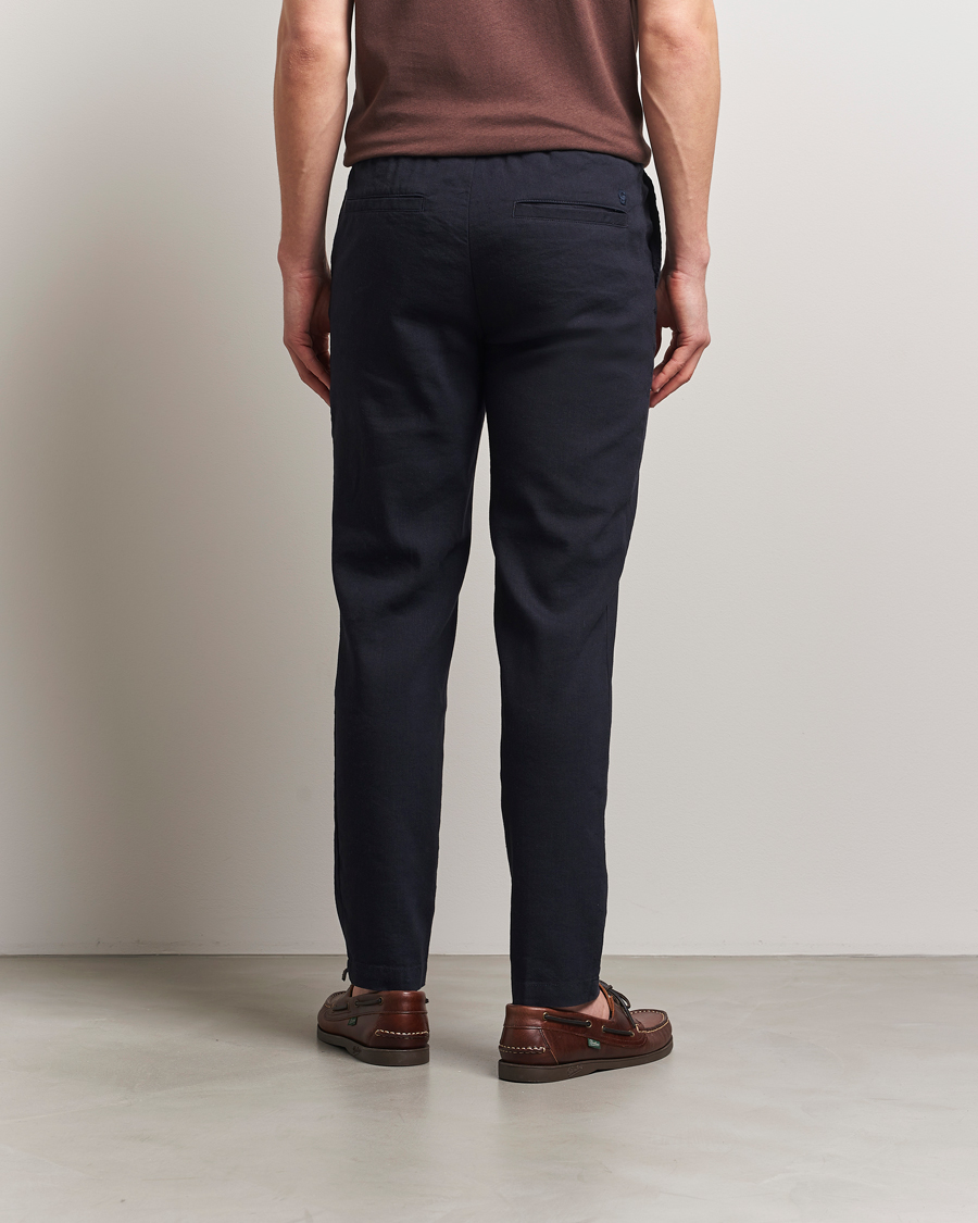 Kane Linen Blend Drawstring Trousers Dark Blue