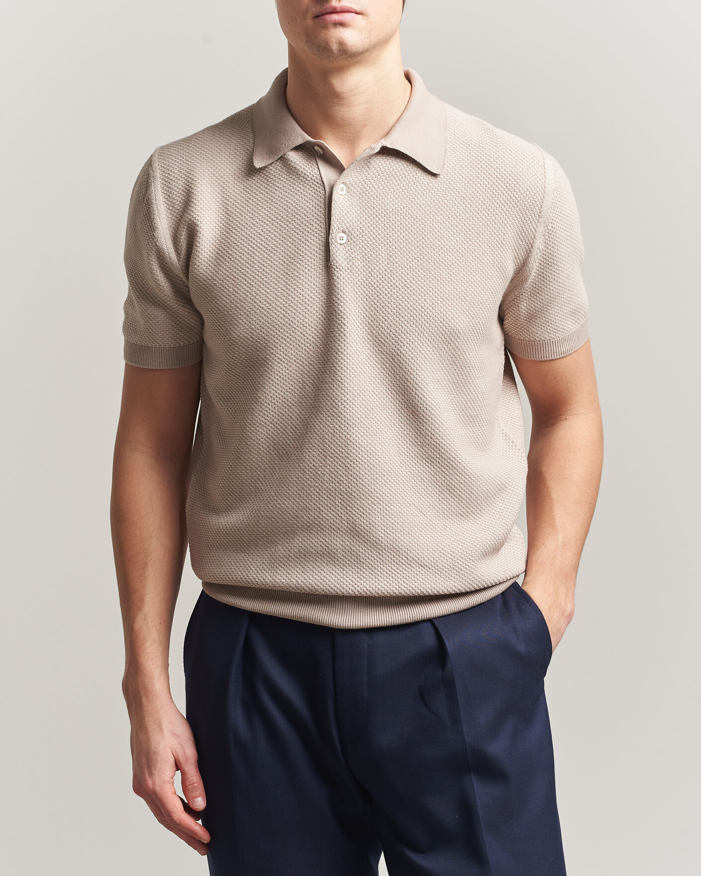 Textured Knit Short Sleeve Polo Off White