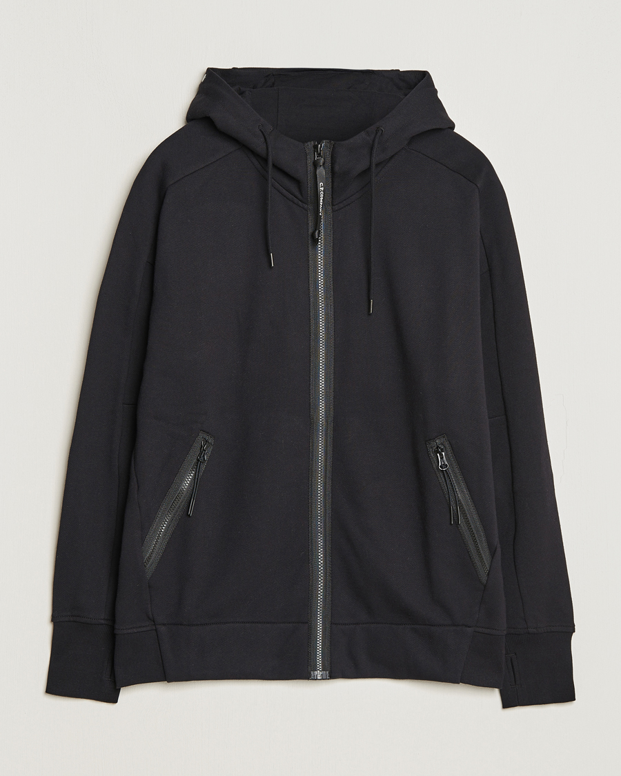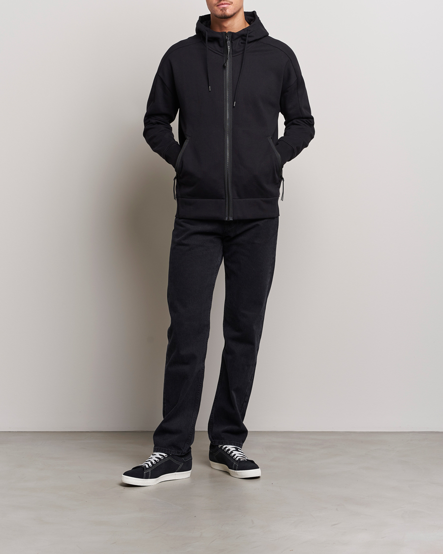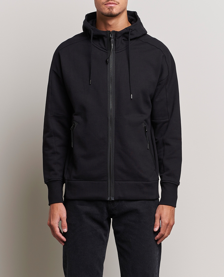 Diagonal Raised Fleece Full Zip Goggle Hoodie Black