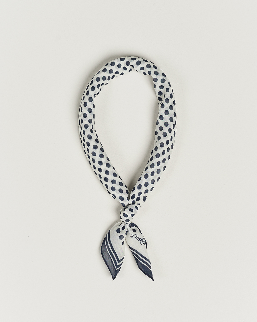 All Over Spot Cotton/Silk Bandana Ecru/Navy