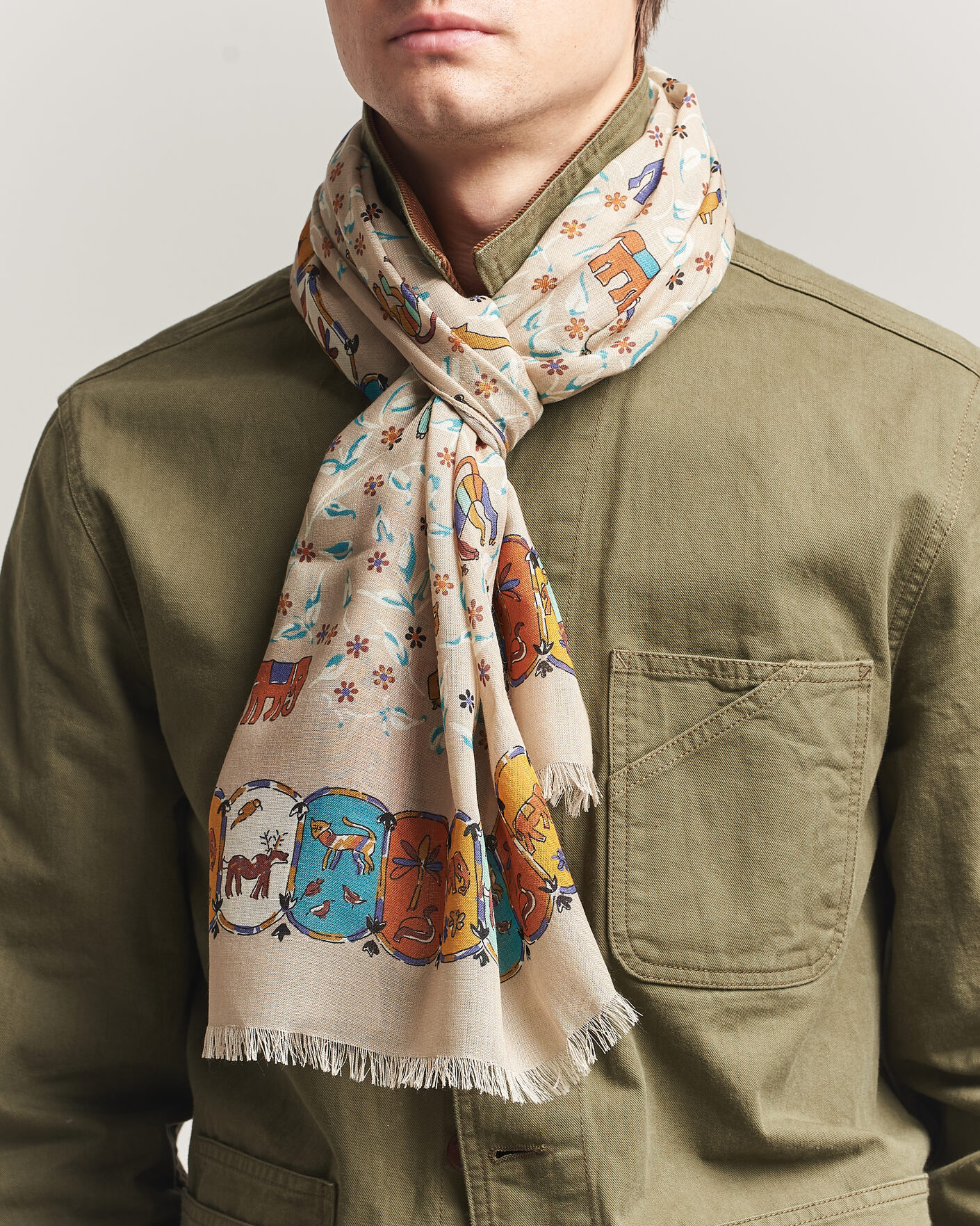 Animals And Flowers Print Crepe Silk Bandana Navy