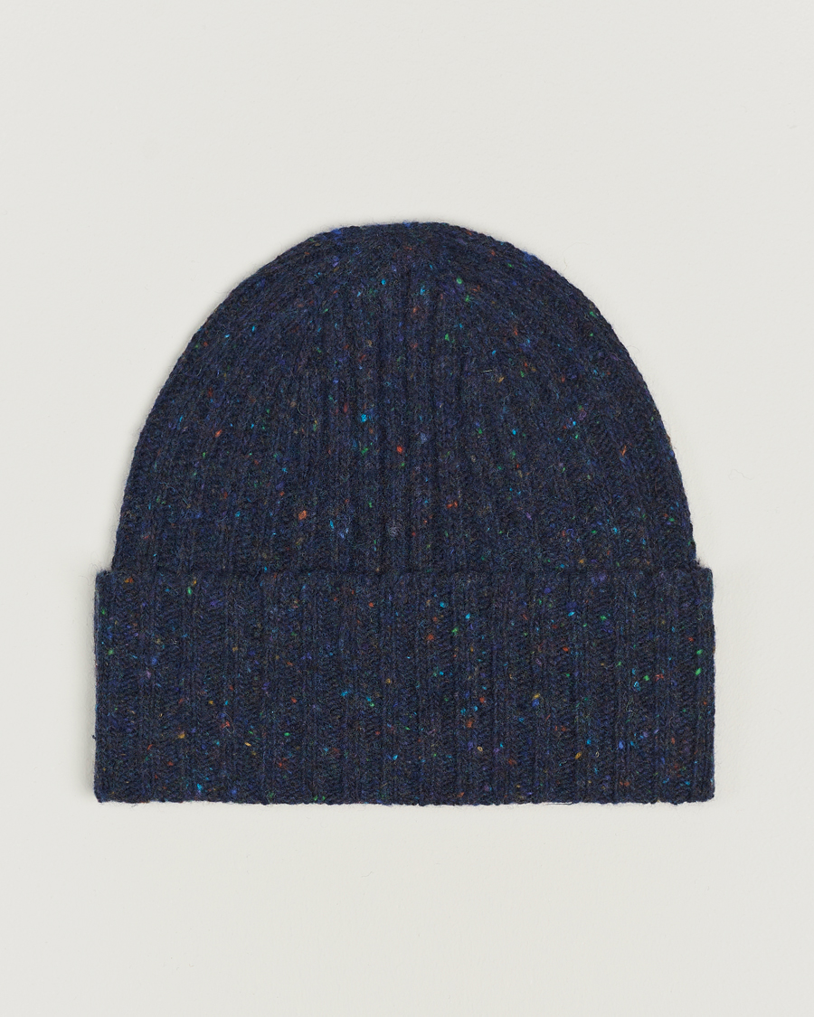 Wool Blend Donegal Beanie Navy Blue