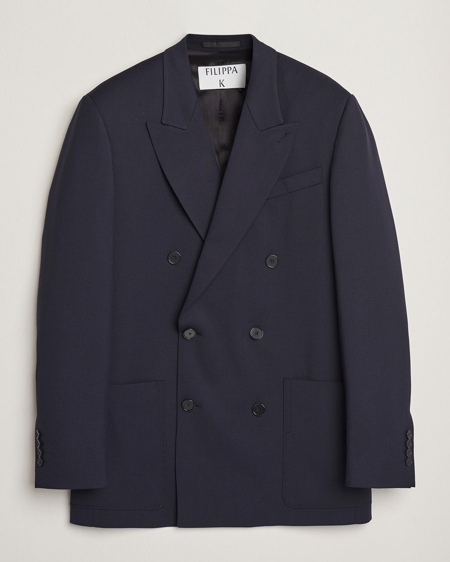 Wide Wool Trousers Navy