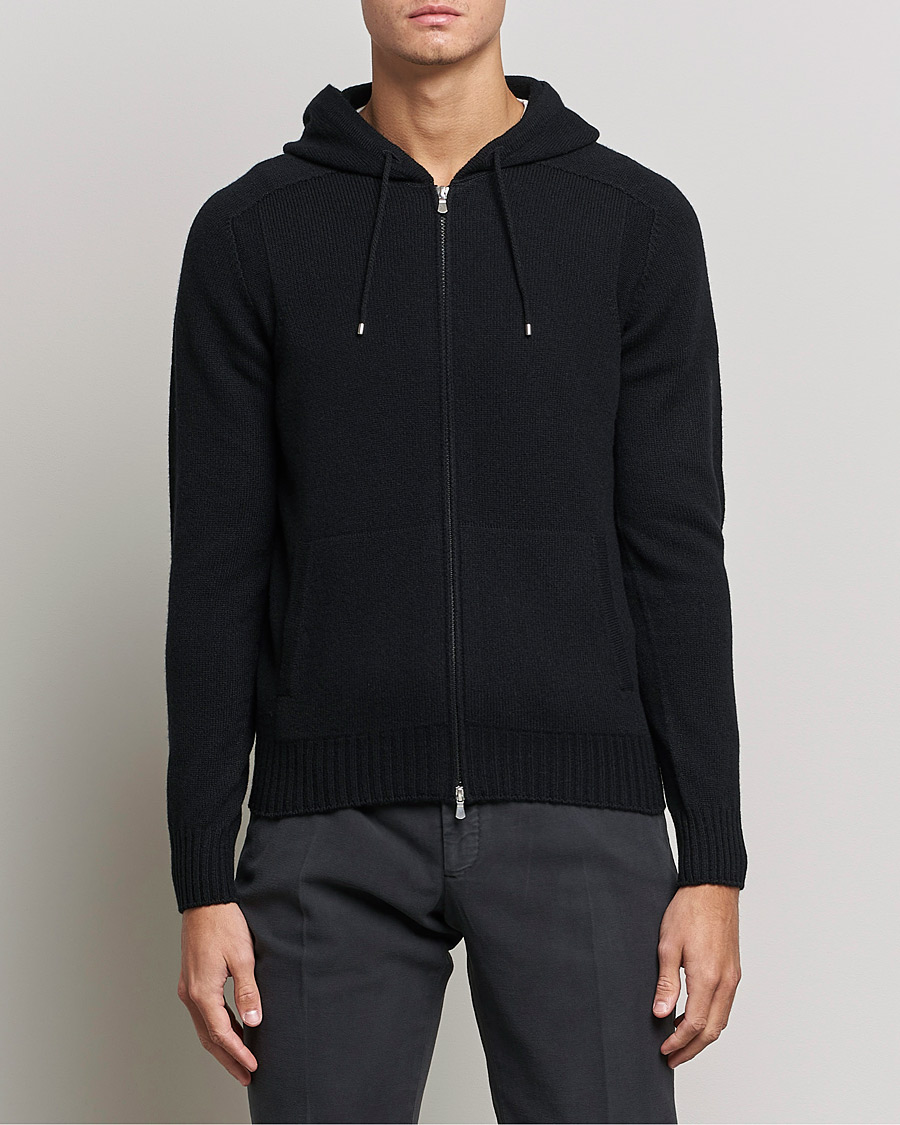 Full Zip Wool Hoodie Black