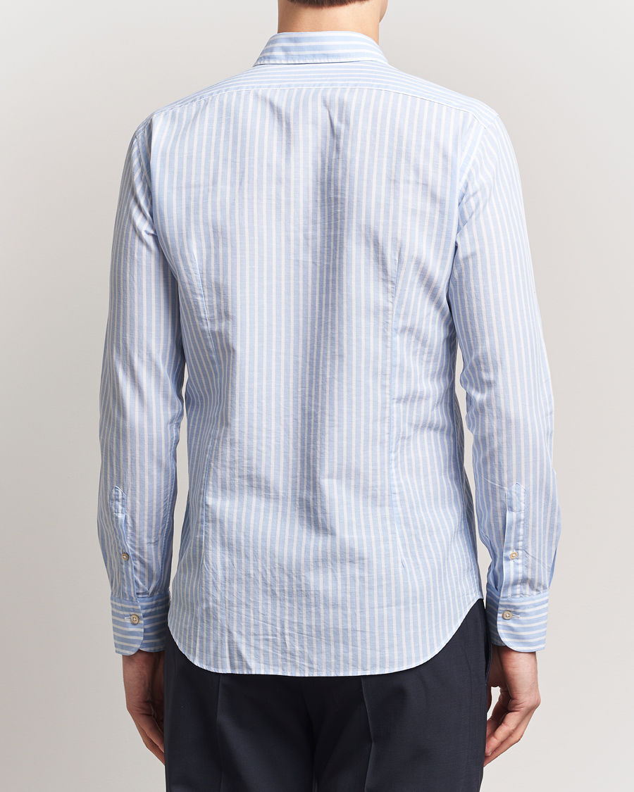 Cotton Linen Casual Shirt Light Blue Stripe