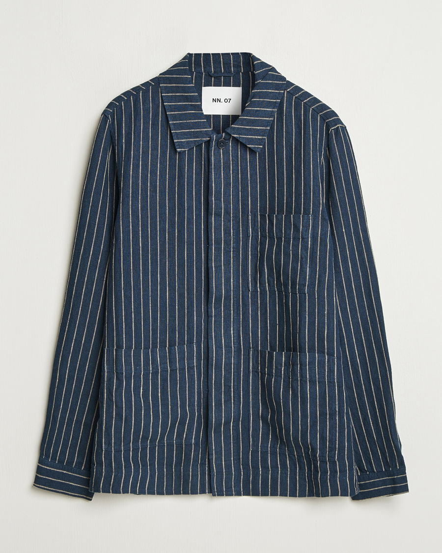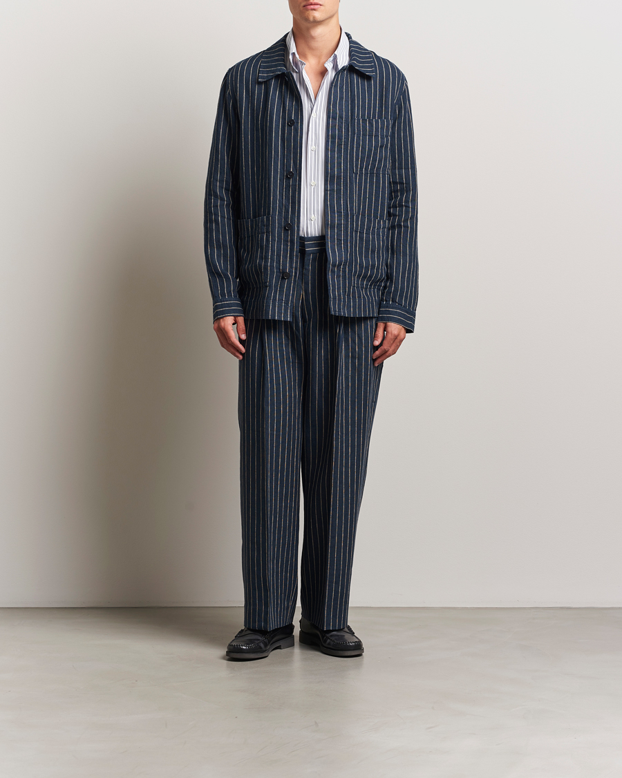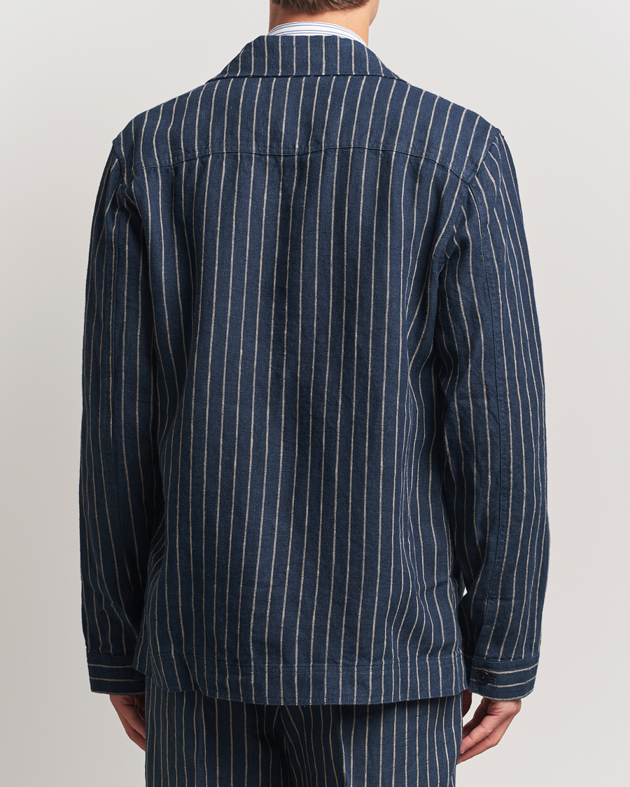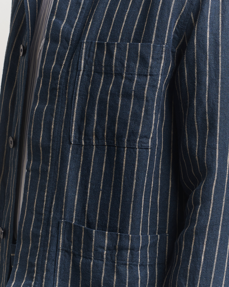Olav Linen Pinstriped Overshirt Navy Blue