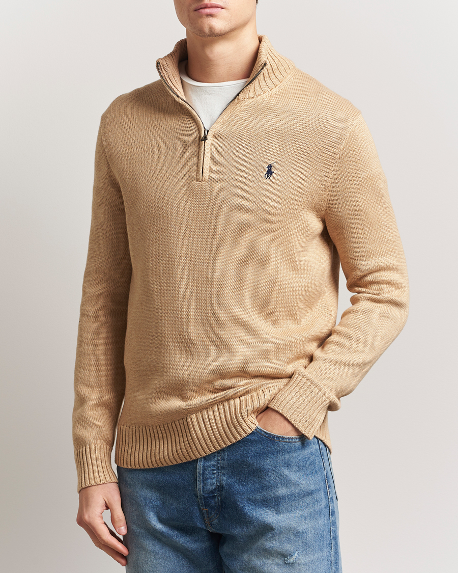 Cotton Pullover Half-Zip Camel Melange