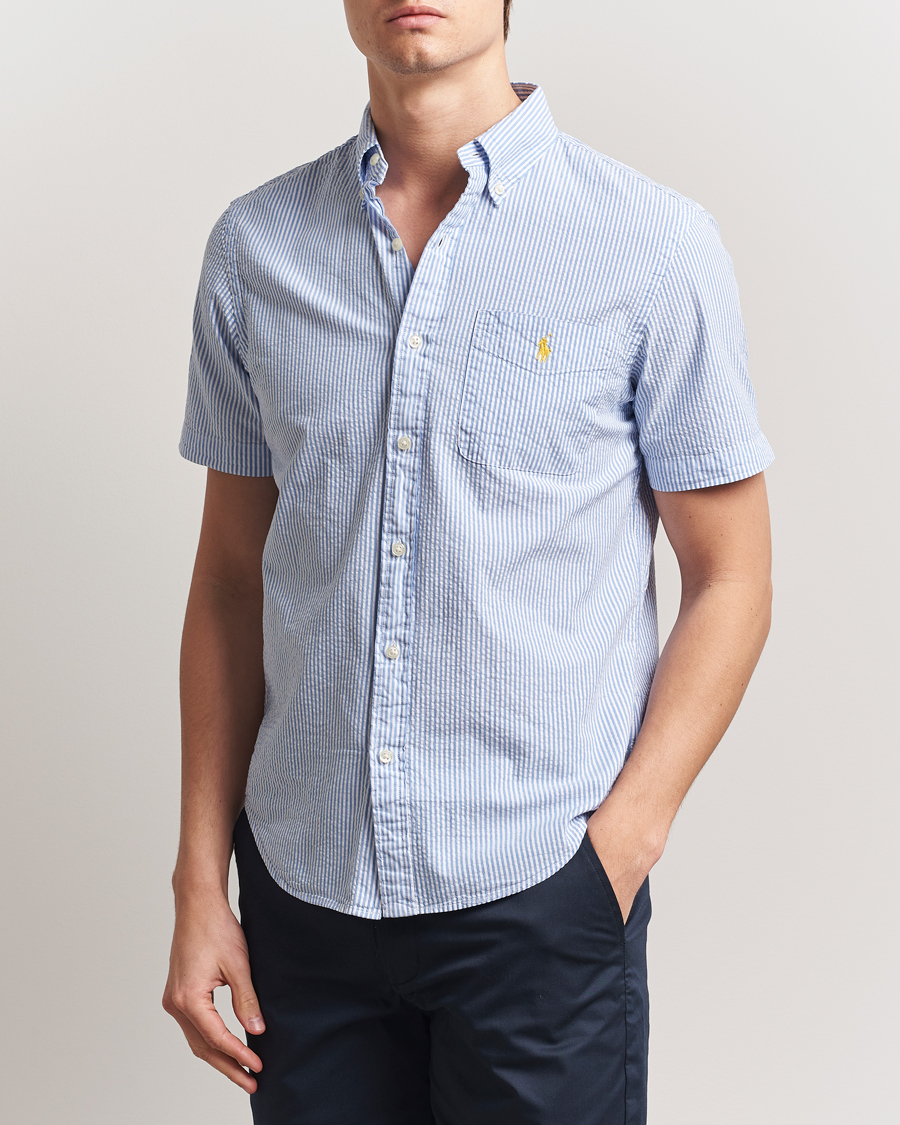Seersucker Short Sleeve Striped Shirt Blue/White