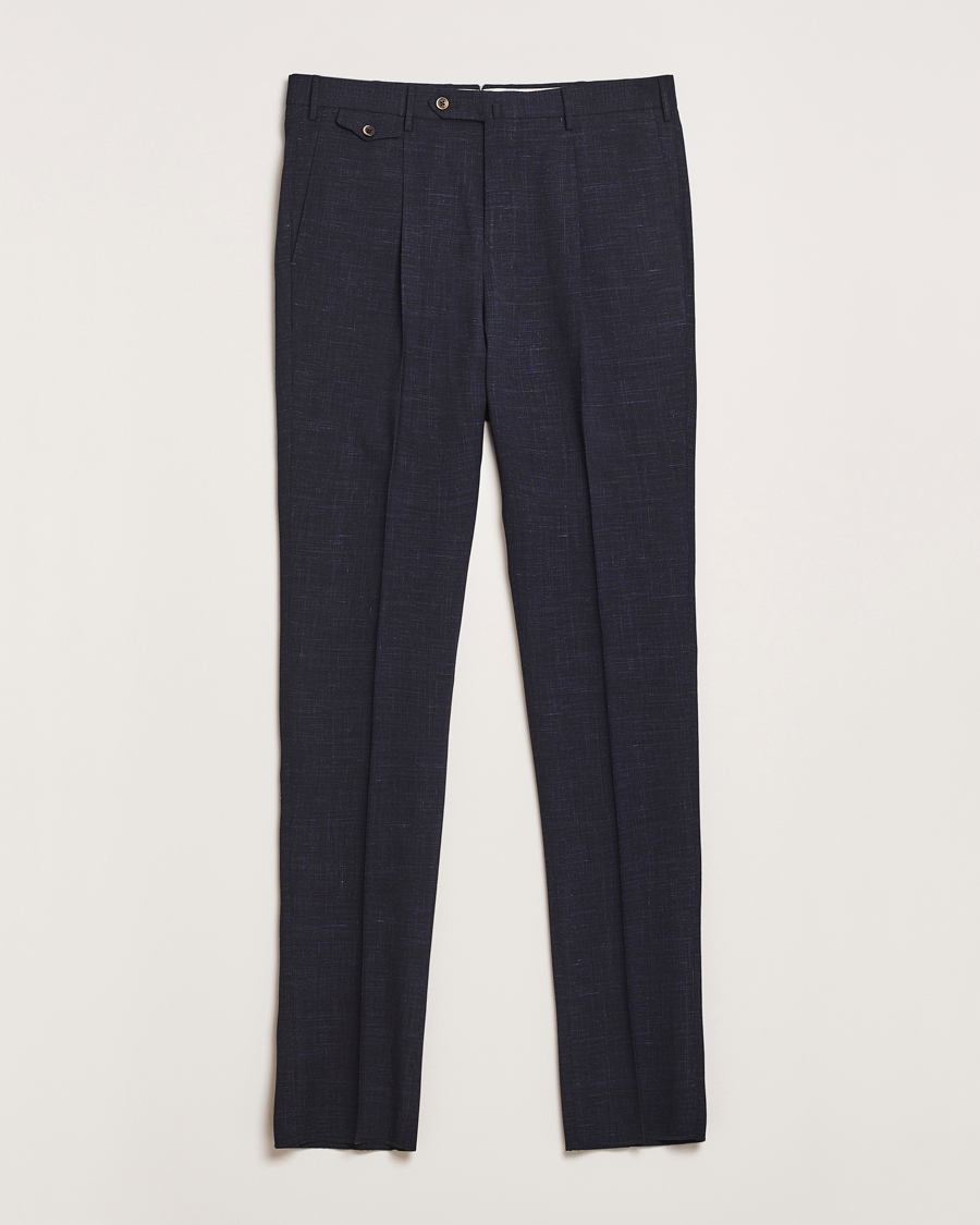 Gentleman Fit Wool/Linen Trousers Navy