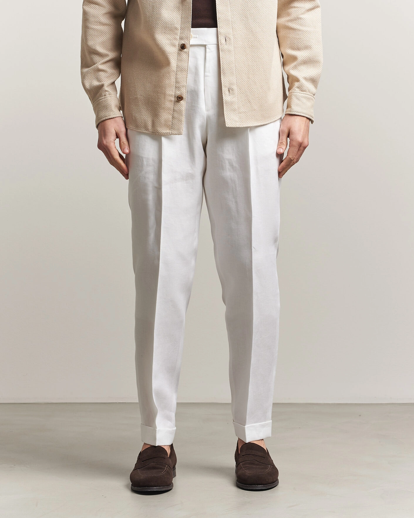 Uomini | Pantaloni | PT01 | Slim Fit Linen Drawstring Pants Light Beige