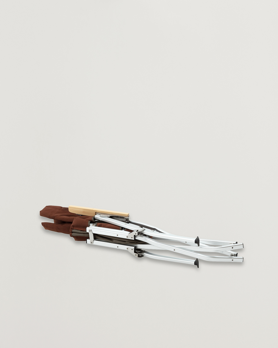 - Struttura in alluminio, braccioli in bambù, fibbia in acciaio inox e cuscino in resistente tessuto canvas.