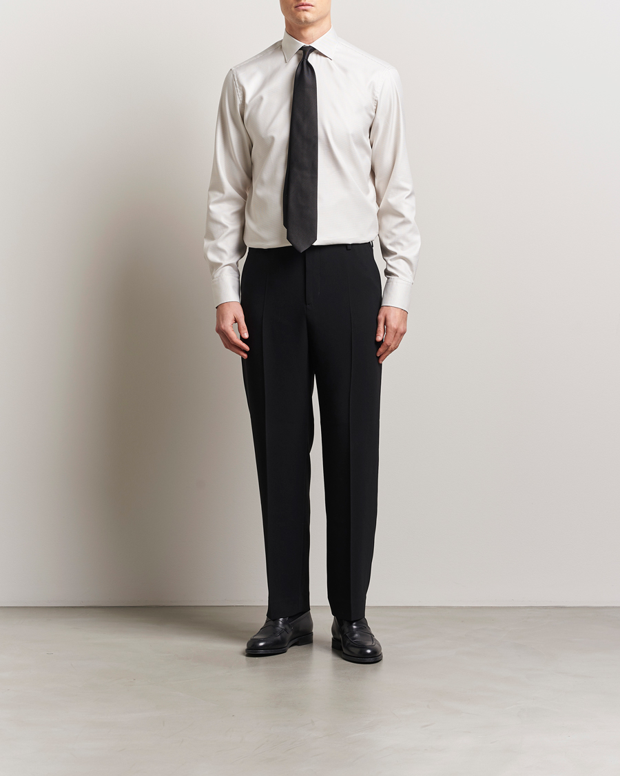 Fitted Body Small Houndstooth Shirt Beige