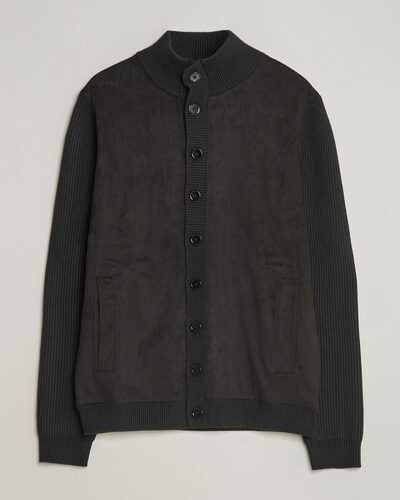 Knitted Hybrid Buttoned Alcantara Cardigan Black