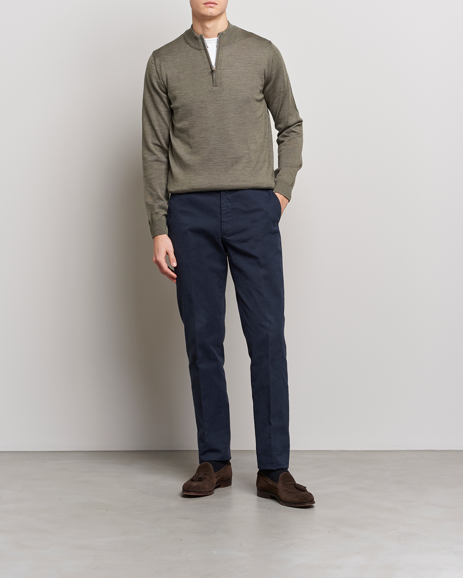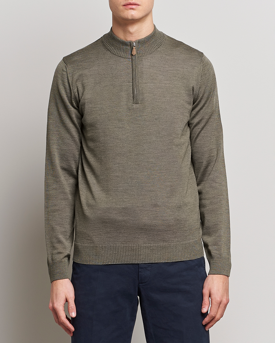Merino Wool Half Zip Olive